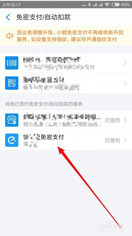 然后在打开的页面,点击要封闭的免密支付菜单。
