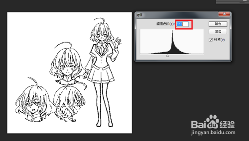 执行阈值后,会弹出一个对话框,将阈值色阶值设置为110(这里的数值不是固定的,具体几多,按照您本身的图片现实结果而定),然后确定,就会获得最终成果图,如图所示:
