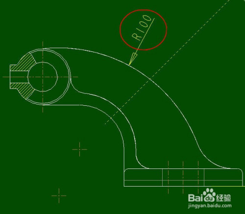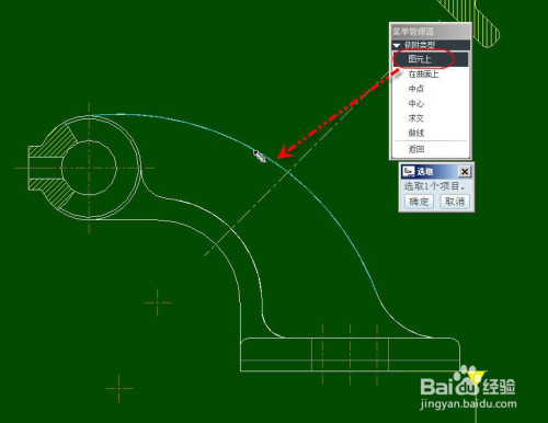 同上方式继续尺度,此次【凭借类型】选择【图元上】,参考选择图示的圆弧,然后按鼠标中键放下尺寸,获得该圆弧的半径尺寸,如图所示。