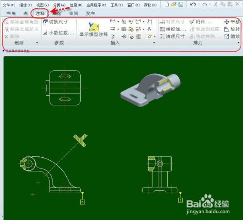首先点击并切换到【注释】选项卡,然后点击【尺寸】打开尺寸标注的菜单办理器。