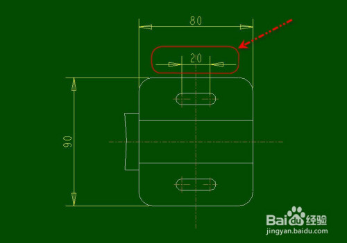 近似的方式按住ctrl键别离选择上下两条边,然后在中心位置按中键放下高度尺寸,如图所示。