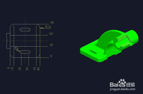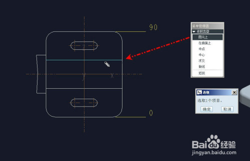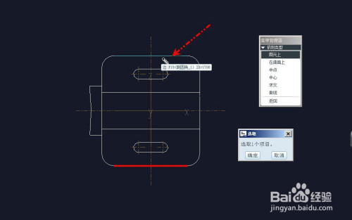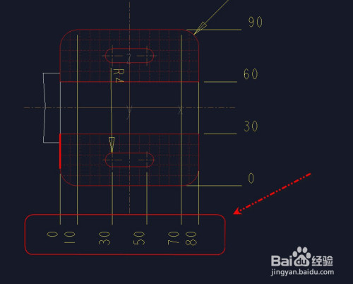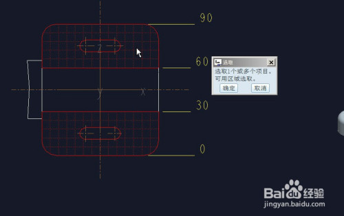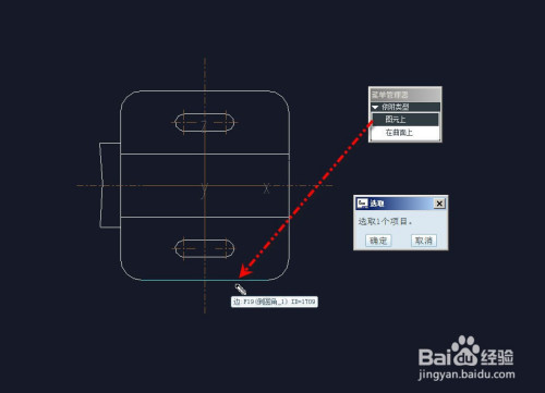 然后选择图示的鸿沟作为基线,最后按下鼠标中键确认主动建立所选平面的所有程度偏向纵坐标尺寸。