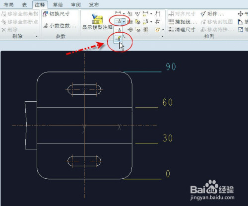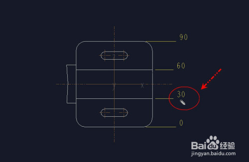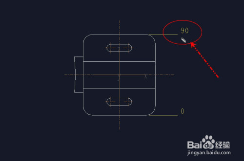 鼠标中键在图示位置放下尺寸,获得第一个坐标尺寸。如图所示。