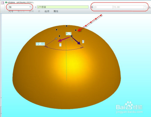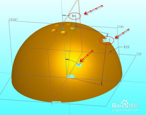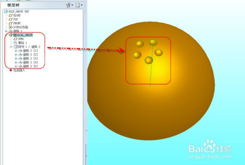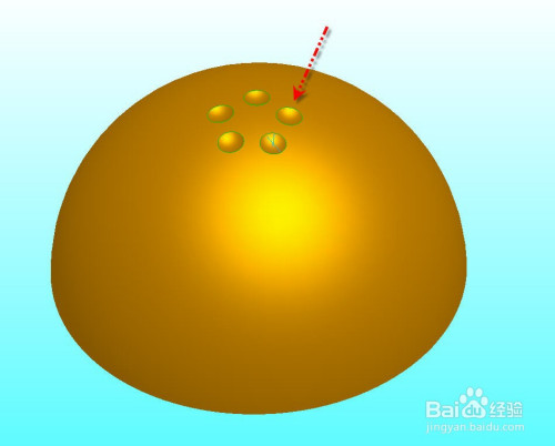 利用半球的竖直中间轴作为参考,利用轴阵列出一周5个窝位,如图所示。