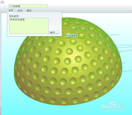 利用曲面的复制和粘贴功能,把半球的实面子组复制出来。