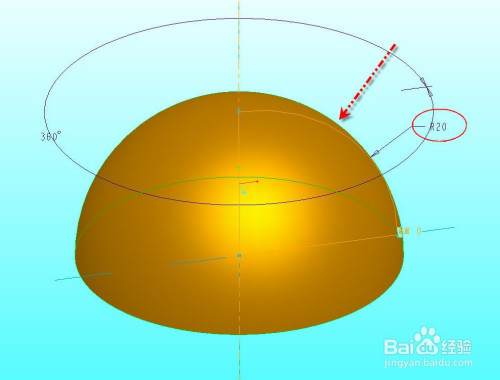 首先利用半径为R20的四分之一圆弧经由过程扭转建立出一个半球 。