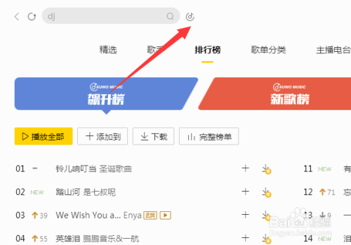 我们进步前辈入到酷我音乐的本家儿界面,进入之后,在界面的中心上方会看到一个符号,这个就是我们的听歌识曲。
