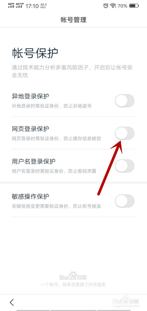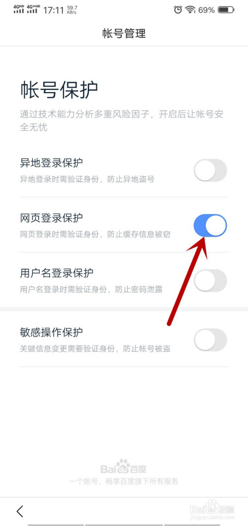 点击“帐号庇护”;