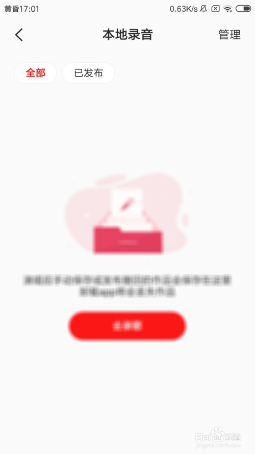 在当地灌音页面中,点击右上角办理按钮。