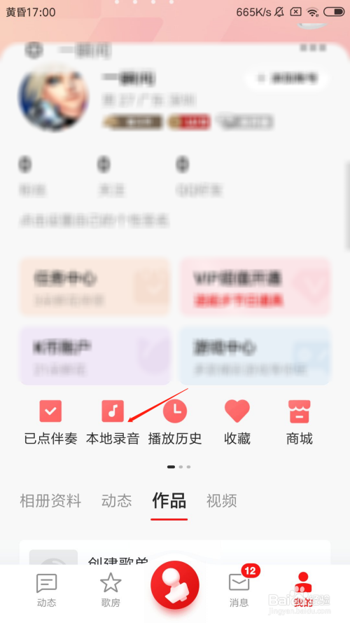 在小我本家儿页中,点击当地灌音选项。