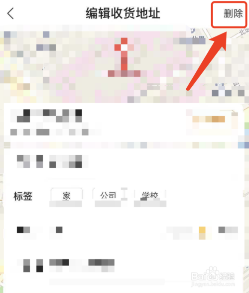 进入【编纂收货地址】界面后,点击右上方【删除】,如图