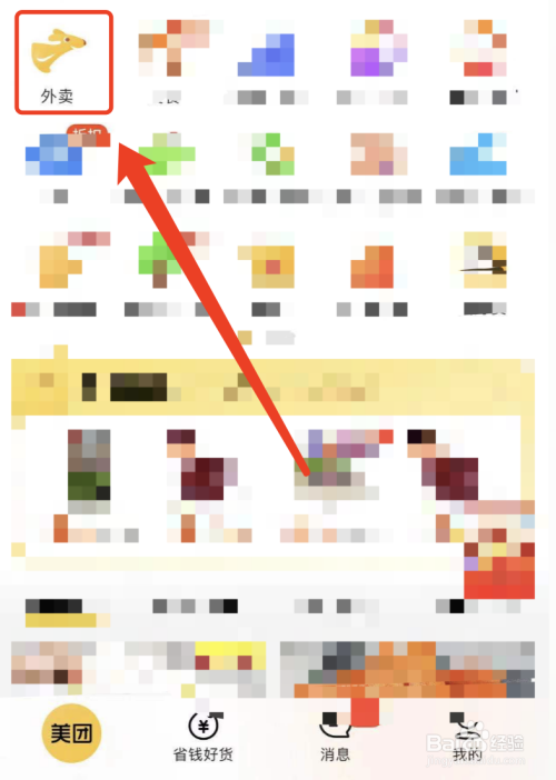 点击打开本家儿机首界面的美团软件,在软件首页点击【外卖】选项,如图;