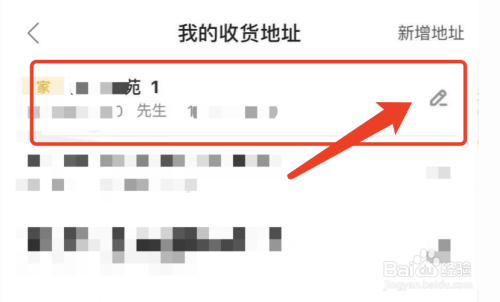 然后进入【我的收货地址】界面,点击要删除地址右边的【铅笔】图标,如图;