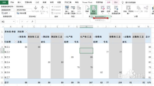 选中透视表中肆意一个单位格,并点击“设计”选项卡,具体如图所示: