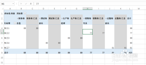 在主动跳转到透视表中后,可以看到数据区域内容已经发生转变了,具体如图所示:
