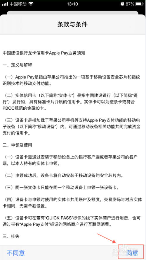 选择有用期,输入信用卡后面的平安码,在条条目与前提界面,点击选择右下角的赞成
