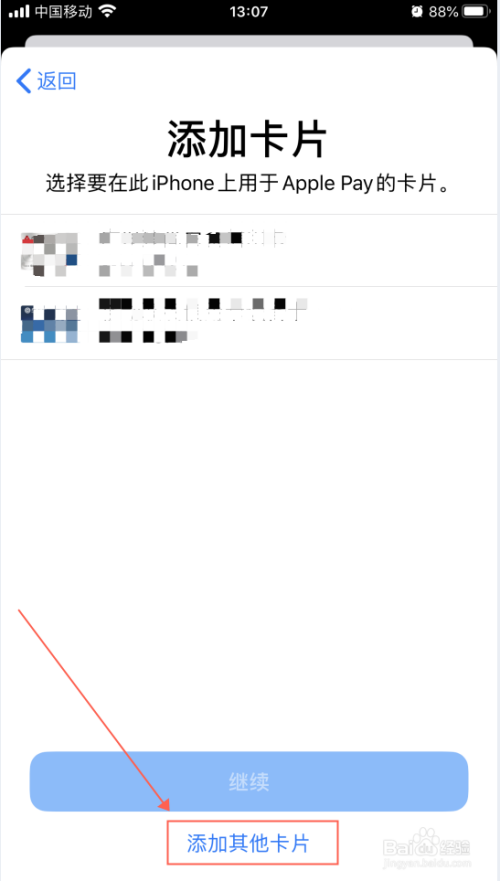 3.点击选择信用卡或借记卡,点击添加其他卡片