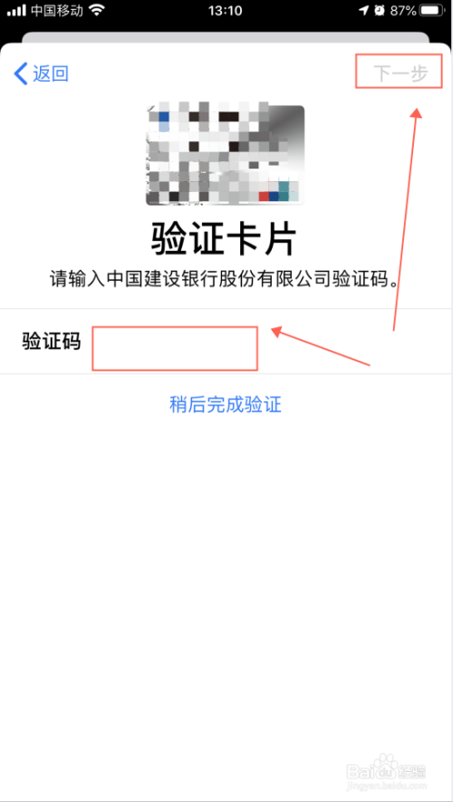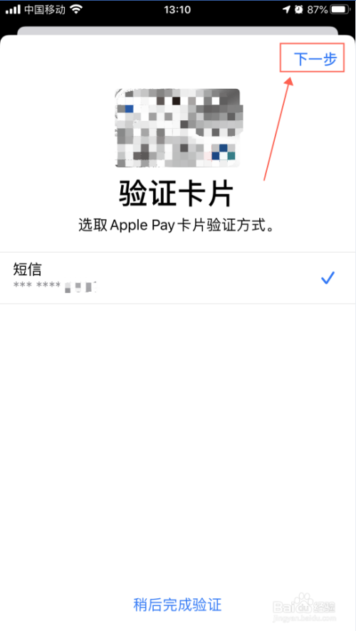 6.点击下一步,然后输入验证码,继续点击下一步,,选择今后,即可完当作信用卡卡片添加,点击完当作即可
