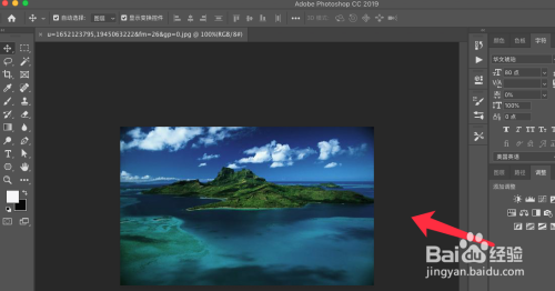 打开ps软件,打开一张素材图片。