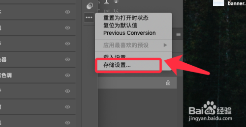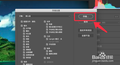 弹出的存储设置面板,勾选需要的设置并点击存储。