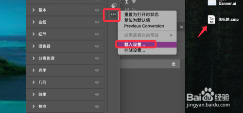 保留当作功可以看到xmp文件,利用时载入设置即可。