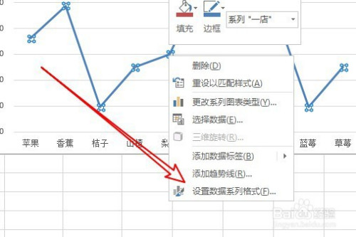 右键点击选中的折线,然后在弹出的菜单中点击设置数据系列格局菜单项。