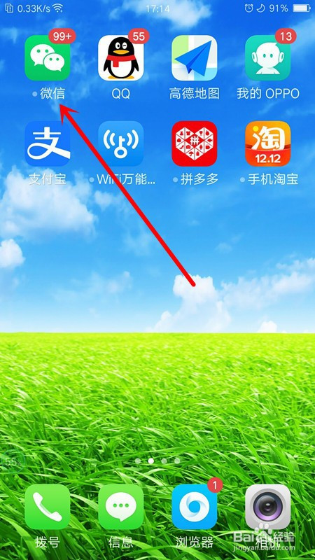 在手机上,点击微信打开
