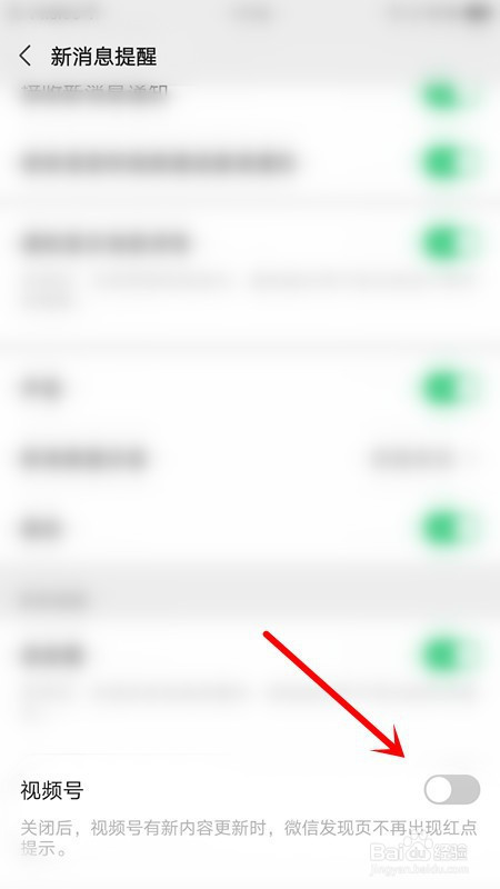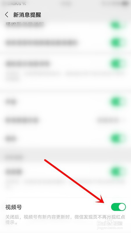 点击视频号后面的按钮封闭