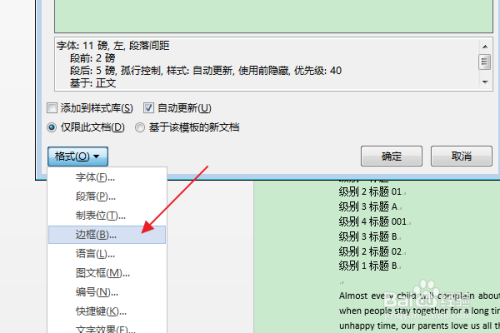 鄙人拉列表中,点击“边框”选项。