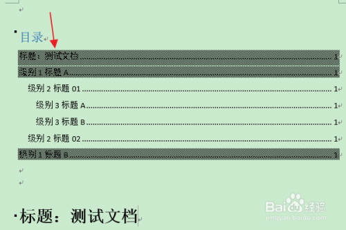 然后点击目次组中“目次”下方的三角按钮。