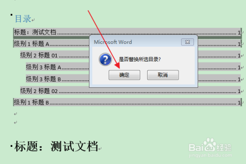 在“是否替代所选目次”的提醒框中,点击“是”。