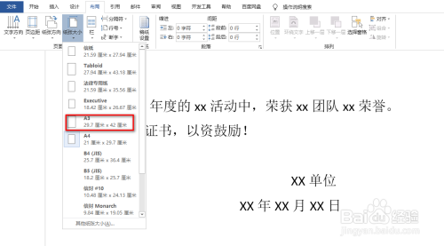 同样地,在“结构”选项卡下点击“纸张大小”,并选中一个大小值,具体如图所示: