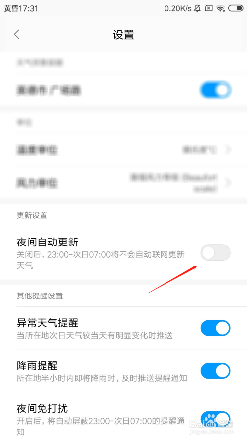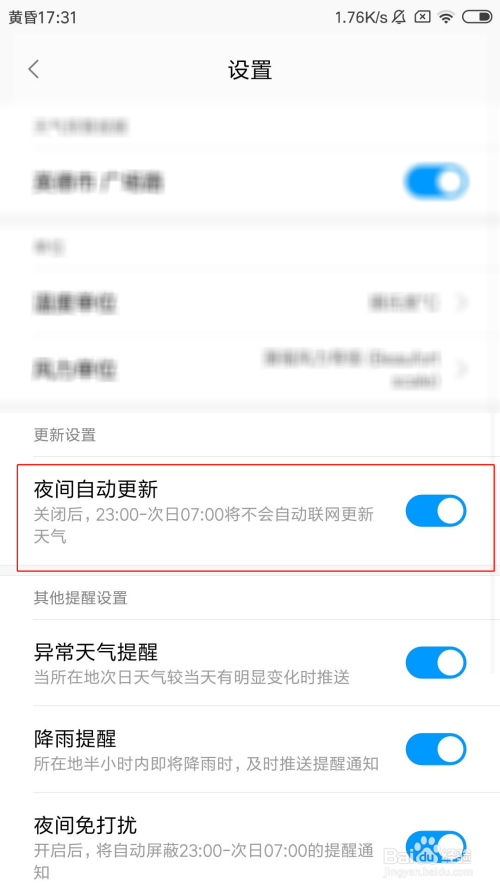 点击之后,红米手机夜间主动更新气候就开启当作功了。