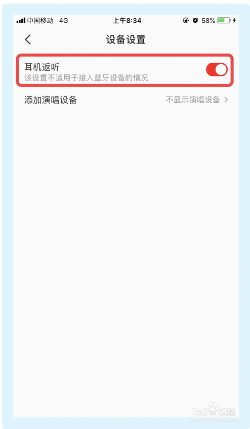 6.在接下来的界面,点击【耳机返听】选项,完当作以上步调全民K歌app即可封闭耳机返听功能。