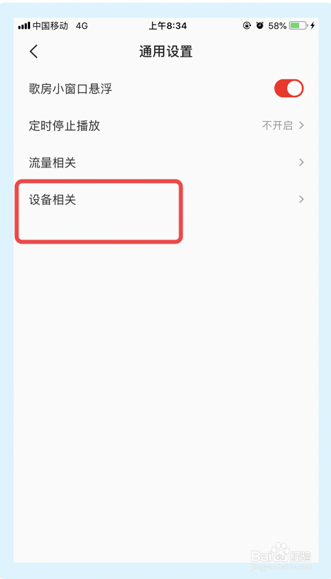 在接下来的界面,点击【设备相关】选项。