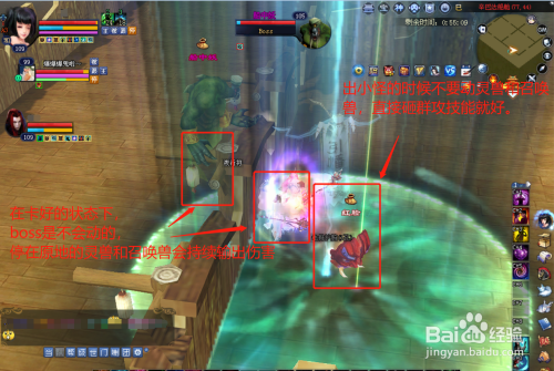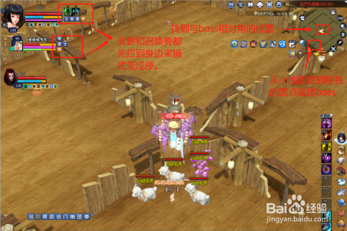 然后经由过程不雅察小地图找到boss地点的位置,在与它相对的位置将灵兽和呼唤兽状况拉到身边调整为遏制。