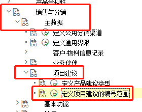 点击'发卖与分销',睁开子项,选择'本家儿数据' —>'项目建议' —>'界说项目建议的编号规模' ,点击执行