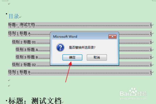 在“是否替代所选目次”的提醒框中,点击“是”。