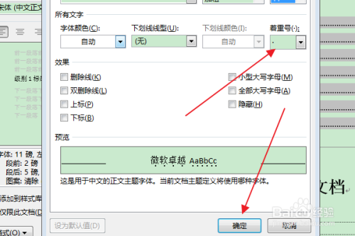 在弹出“字体”对话框中,在“着重号”下拉框中选择“小数点”选项,点击确定。