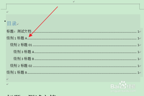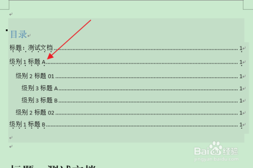 返回编纂区,可以看到选中级别(级别1)目次项的“着重号”已被删除。