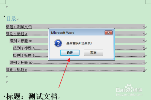 在“是否替代所选目次”的提醒框中,点击“是”。