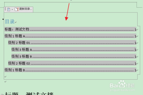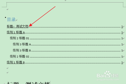 返回编纂区,可以看到选中级别(级别1)的目次项不包罗联系关系页码的字已被添加了下划线。