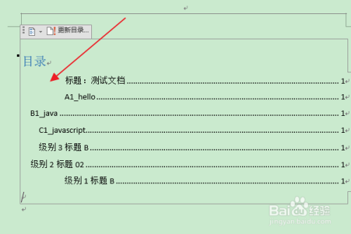 返回编纂区,可以看到选中级别(级别1)目次项文本“首行缩进”的缩进值已被点窜。