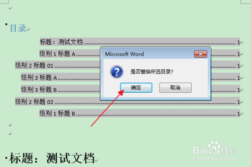 在“是否替代所选目次”的提醒框中,点击“是”。