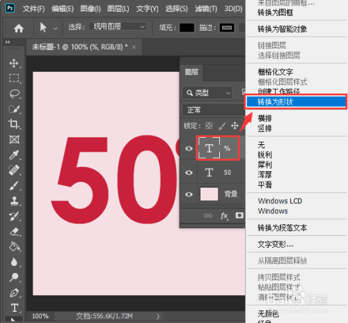 我们右键把百分比的符号【转换为外形】,如图所示。