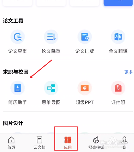 打开软件之后,在应用项目栏中选择简历助手功能。