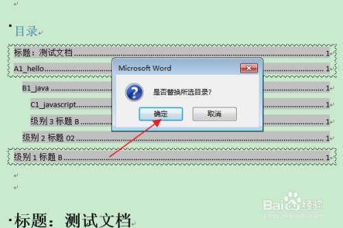 在“是否替代所选目次”的提醒框中,点击“是”。