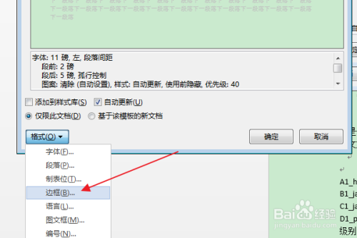 在弹出“点窜样式”对话框中,点击左下角“格局”下拉按钮。