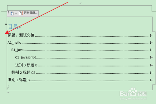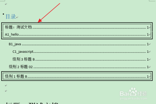 返回编纂区,可以看到选中级别(级别1)目次项已被添加了双线边框。