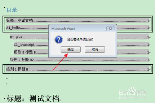 在“是否替代所选目次”的提醒框中,点击“是”。